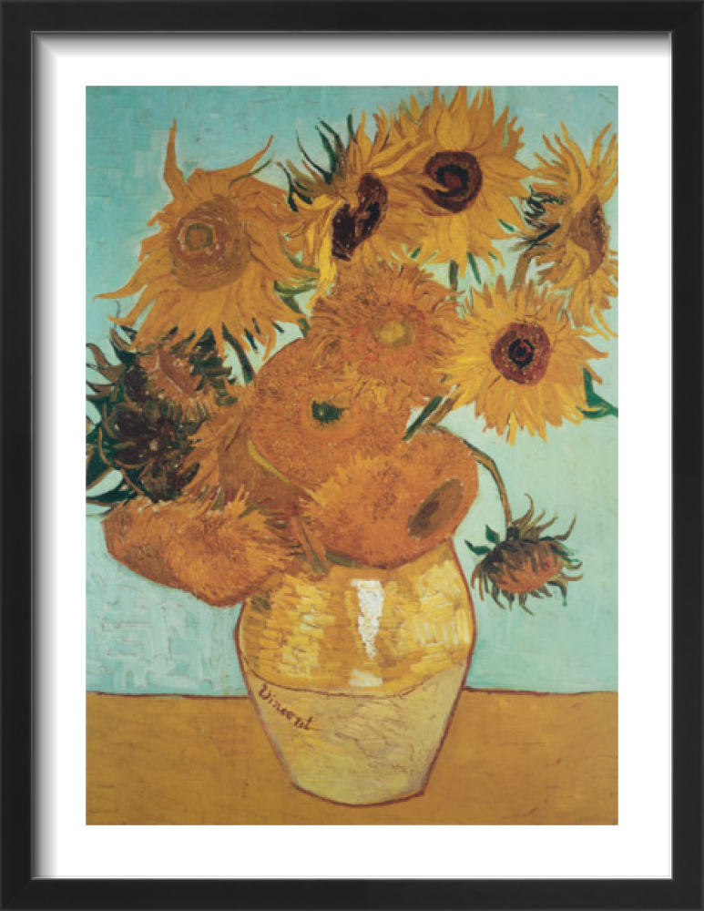 Amazon Com Vincent Van Gogh Sunflowers 8x10 Art Print With Elegant Gold Border Text Black Frame Glass Home Decor Products Posters Prints